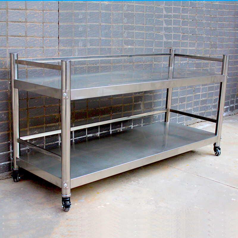 Stainless Steel Kitchen Rack with Wheels Two-Layer Fence Microwave Oven Rack Pot Rack Seasoning Rack Floor Storage Rack