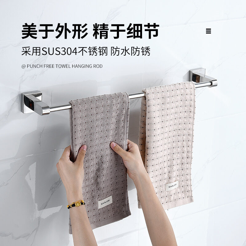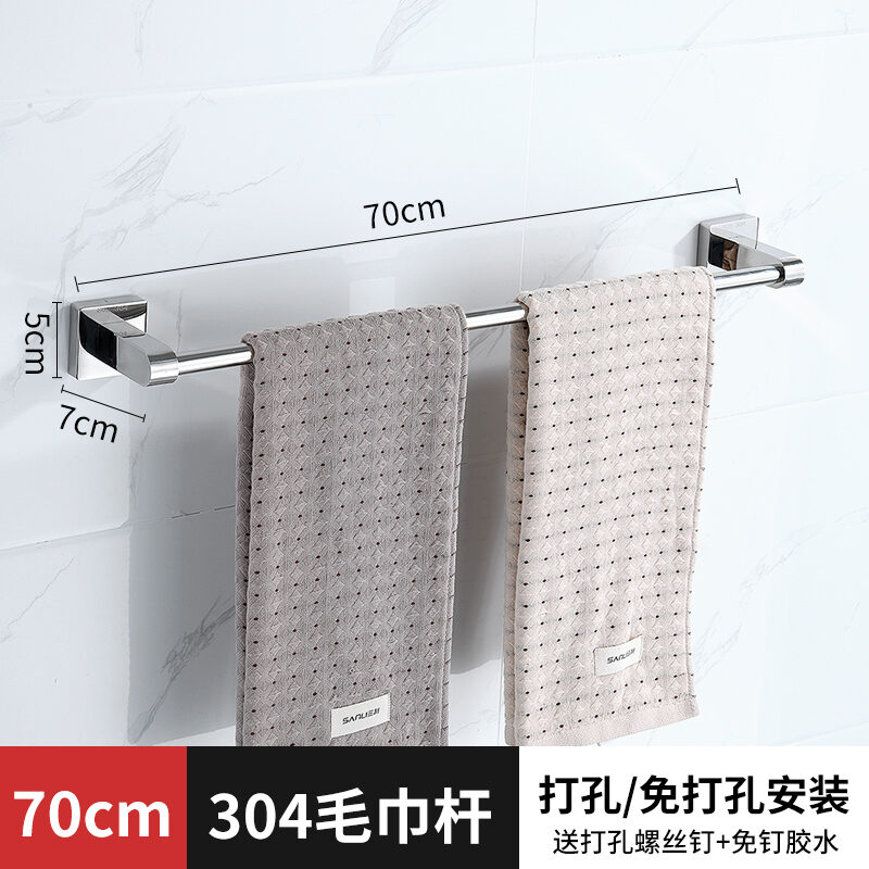 Towel Bar Punch-free Bathroom 304 Stainless Steel Thickened Towel Rack Bathroom Wall Hanging Rack Single Rod