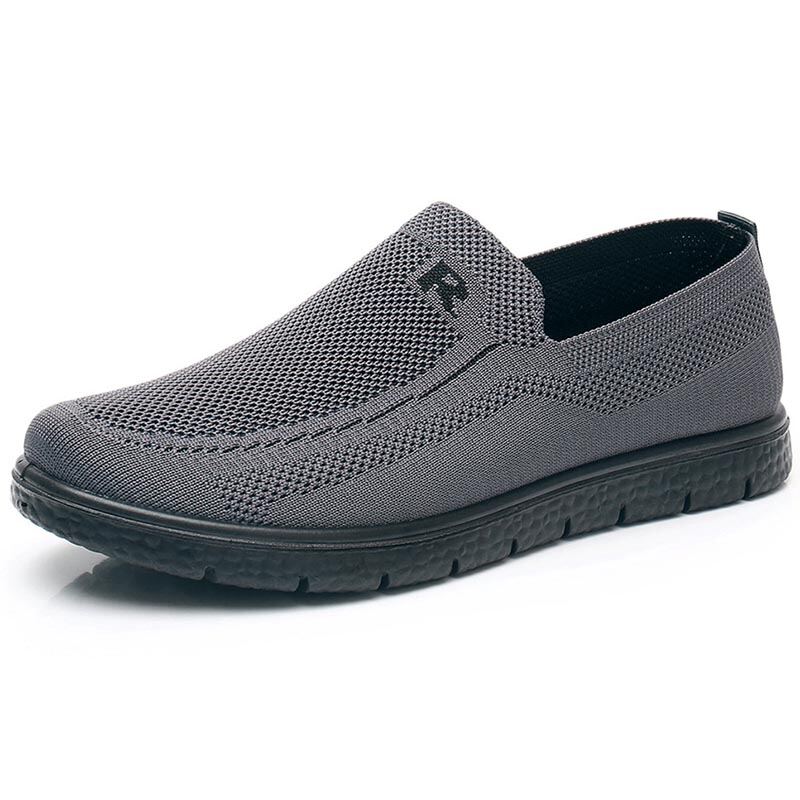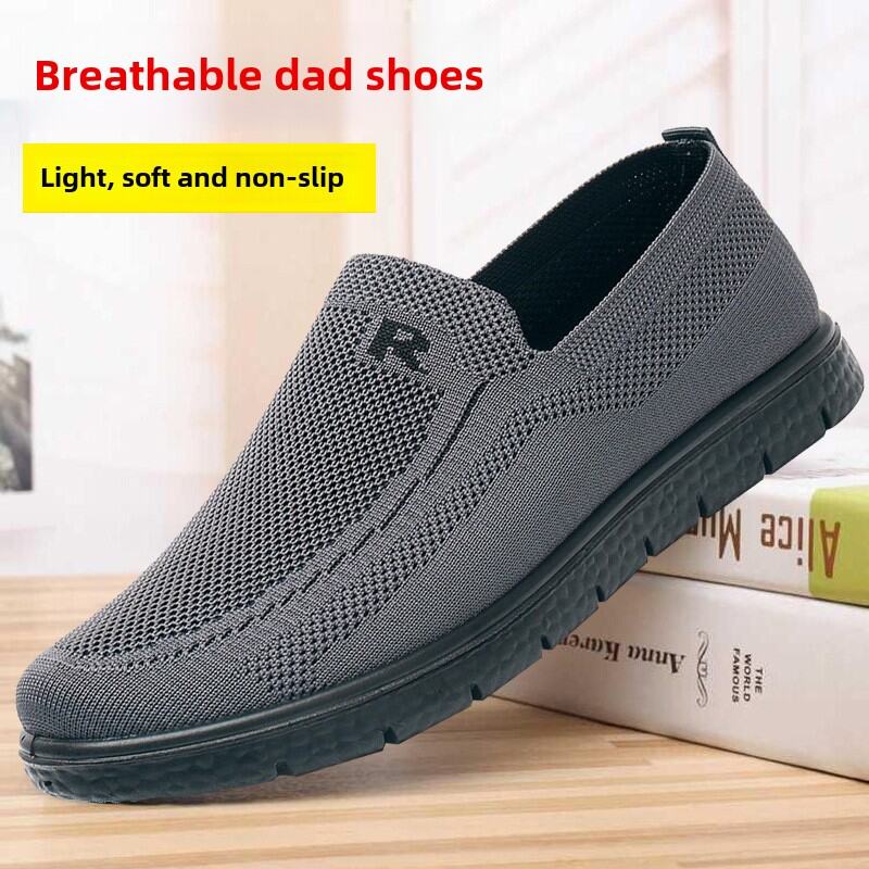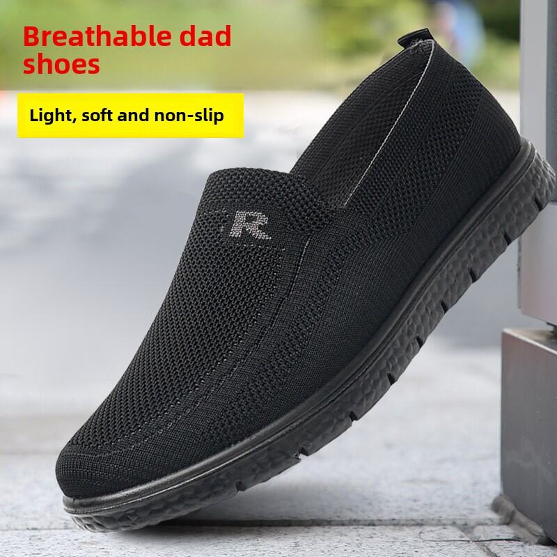 New Arrival Old Beijing Cloth Shoes Men's Spring & Fall Flying Woven Breathable Middle-Aged and Elderly Thick Sole Loose Elderly Oversized Shoes Dad Shoes