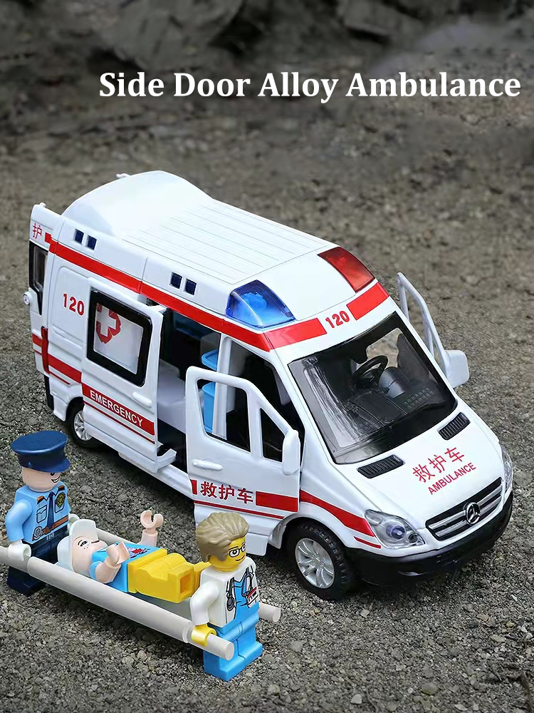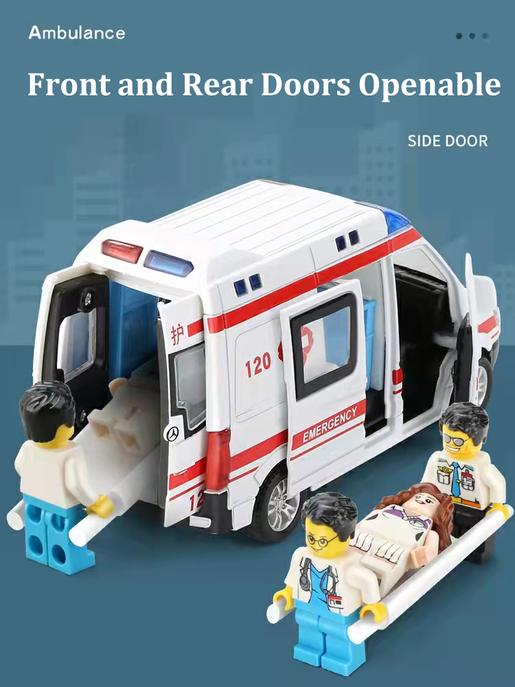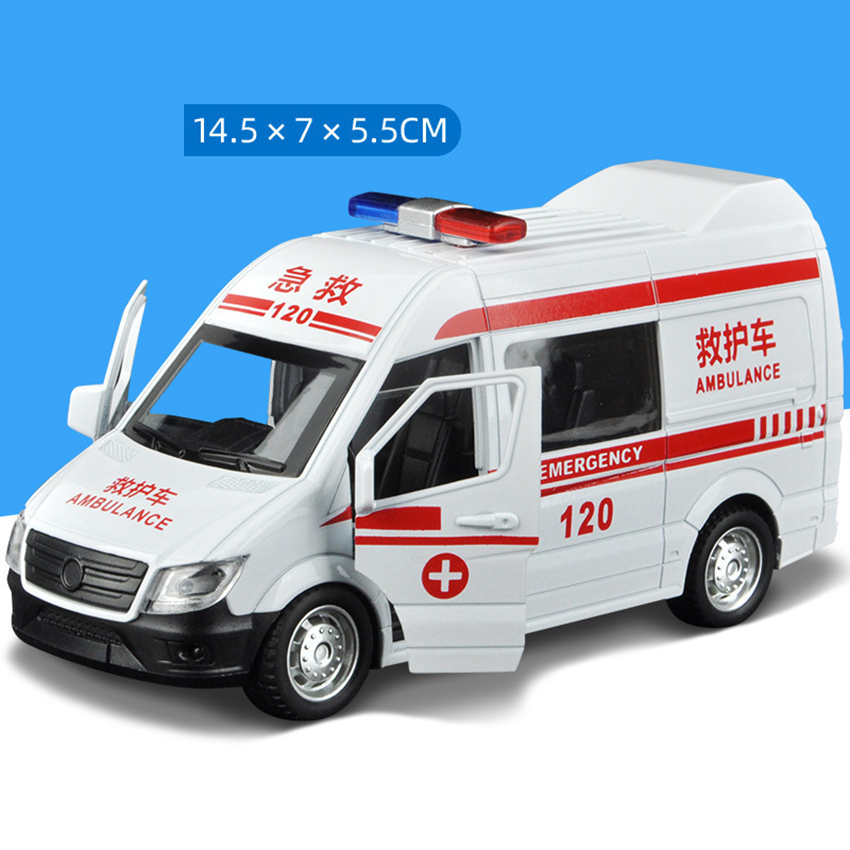 Meettoy Children's Alloy Emergency Ambulance Toy With Sound And Light Pull Back Can Open The Door Cars for Baby Boys Girls Birthday Christmas Gifts