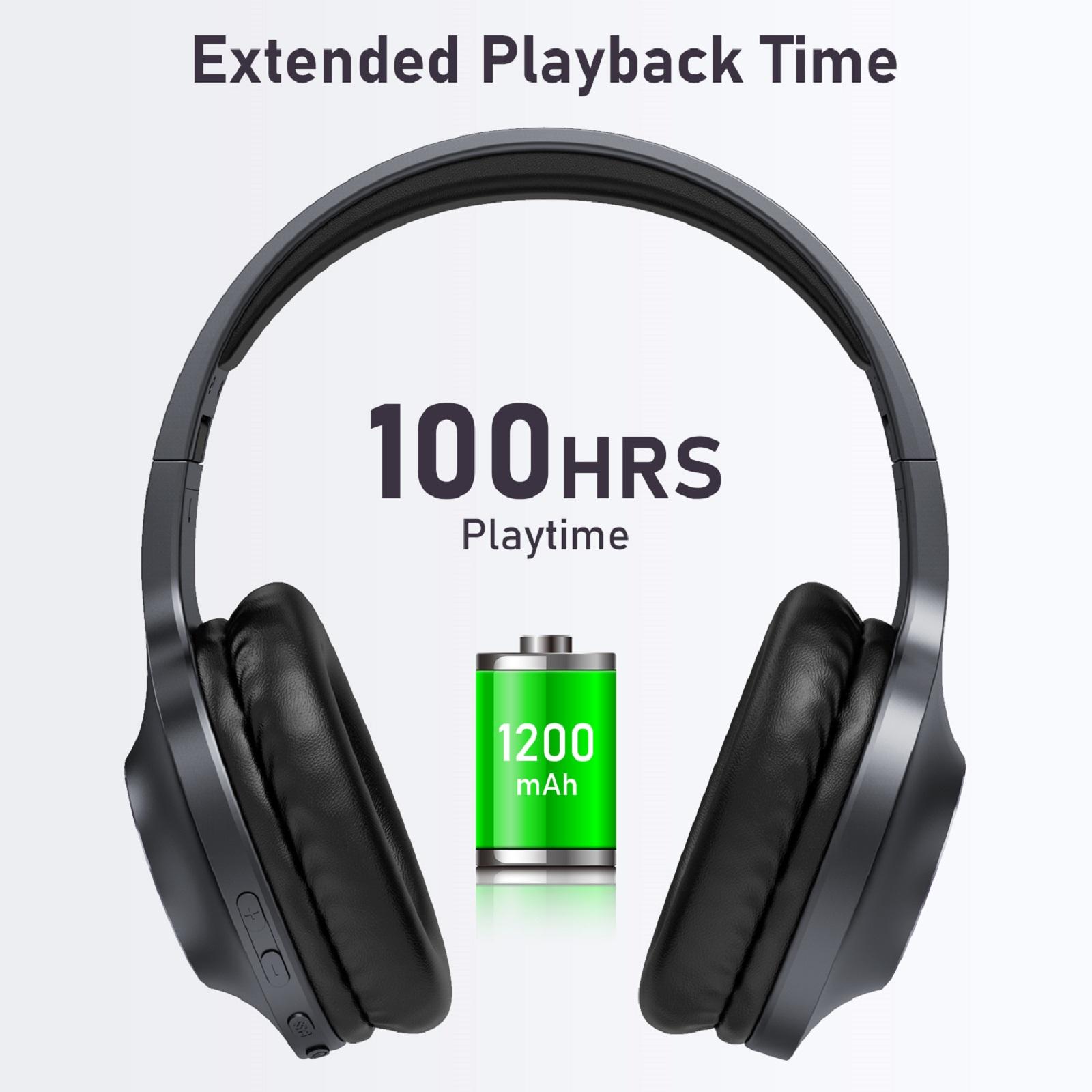 - Up to 100 Hours of Playtime: Using our headphones for 2.5 hours a day can give you a massive 40 days total usage. No more worries about power even when traveling for a full month.
