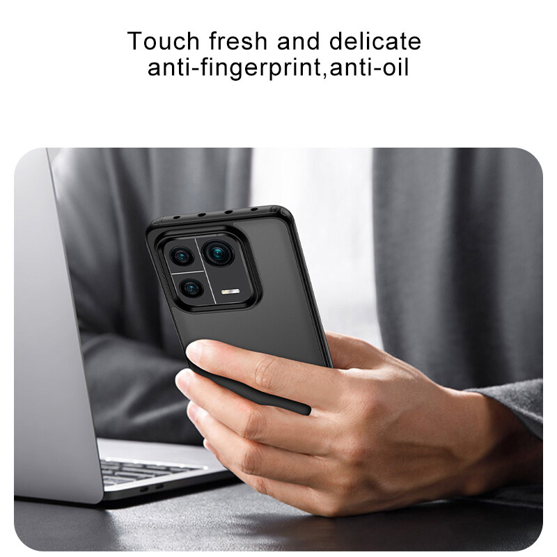 Lenuo for Xiaomi 13 13 Pro Case - 4-corner Shockproof Protection Flexible Silicon Bumper + PC Frosted Semi Transparent Back Cover