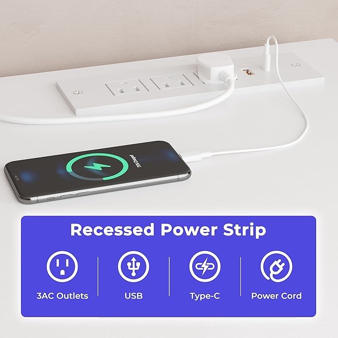 • 【Matching Plugs】 The computer desk’s plug holes fit perfectly with the plugs, allowing the plugs to be locked to the office table and not take up desktop space, complete with Power Outlets, USB & Type-C Outlet for convenience.